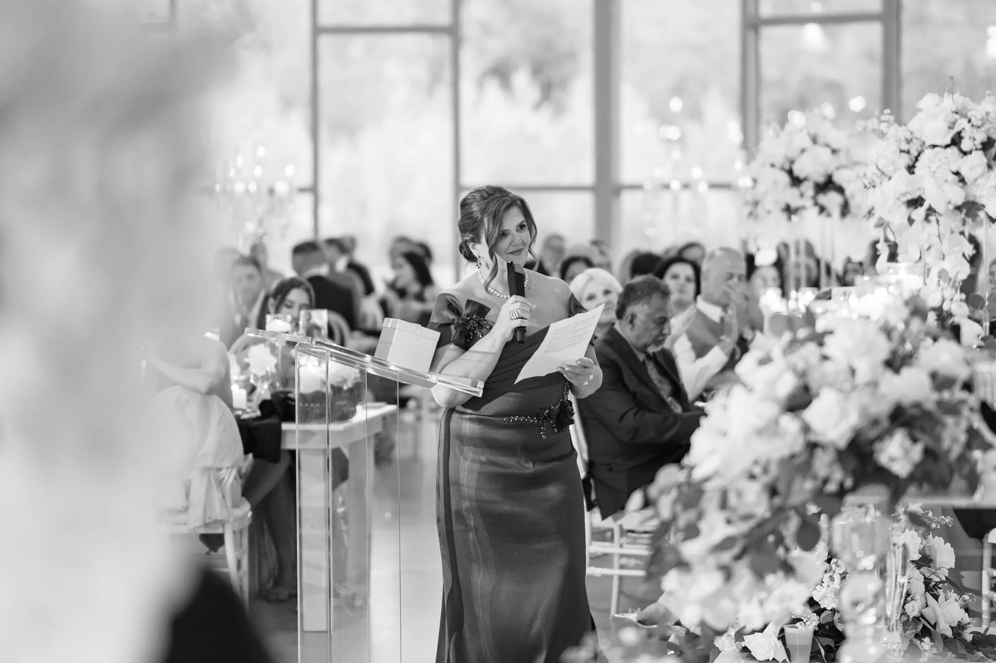 The vision came to life beautifully thanks to Ariana and Linda, whose planning and execution were nothing short of exceptional. Every element of the day felt deliberate and layered, especially the reception design. As wedding photographers, we see a wide range of styling approaches throughout the season, but this head table stood out instantly. The florals, textures, and scale were striking yet refined, creating a statement that felt elegant rather than overwhelming.